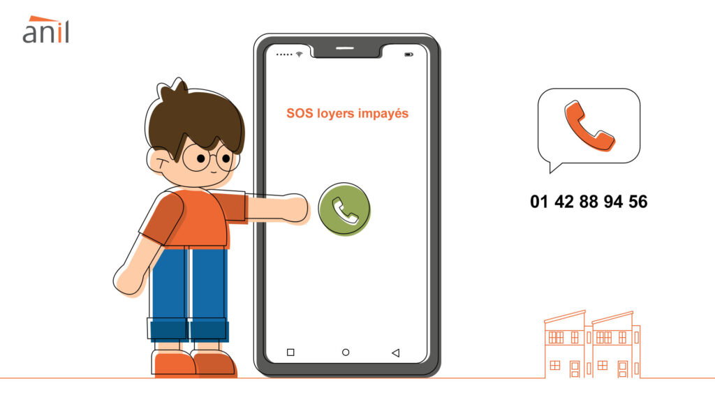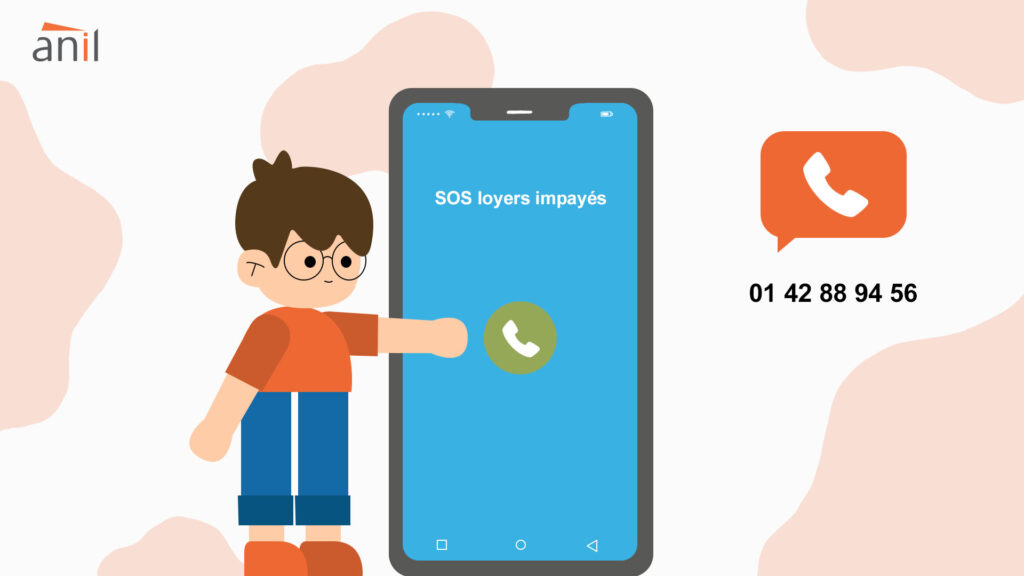 Voici la phrase illustrée : "Le locataire appelle le numéro SOS loyers impayés qui s'affiche"