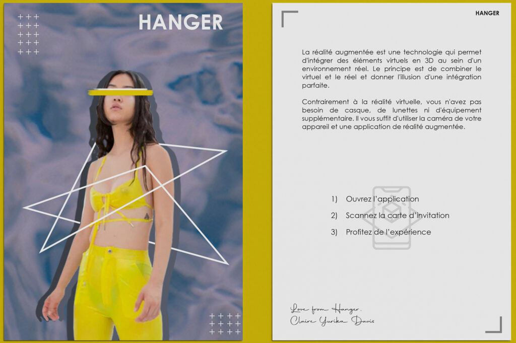 Ces affiches sont également des cartons d'invitation envoyés avec un QR code à scanner, le tout amenant l'utilisateur sur un défilé en réalité augmenté de Hanger, autre partie de notre communication à 360.