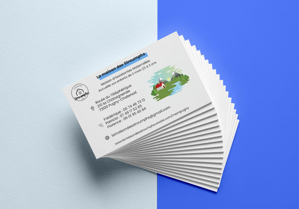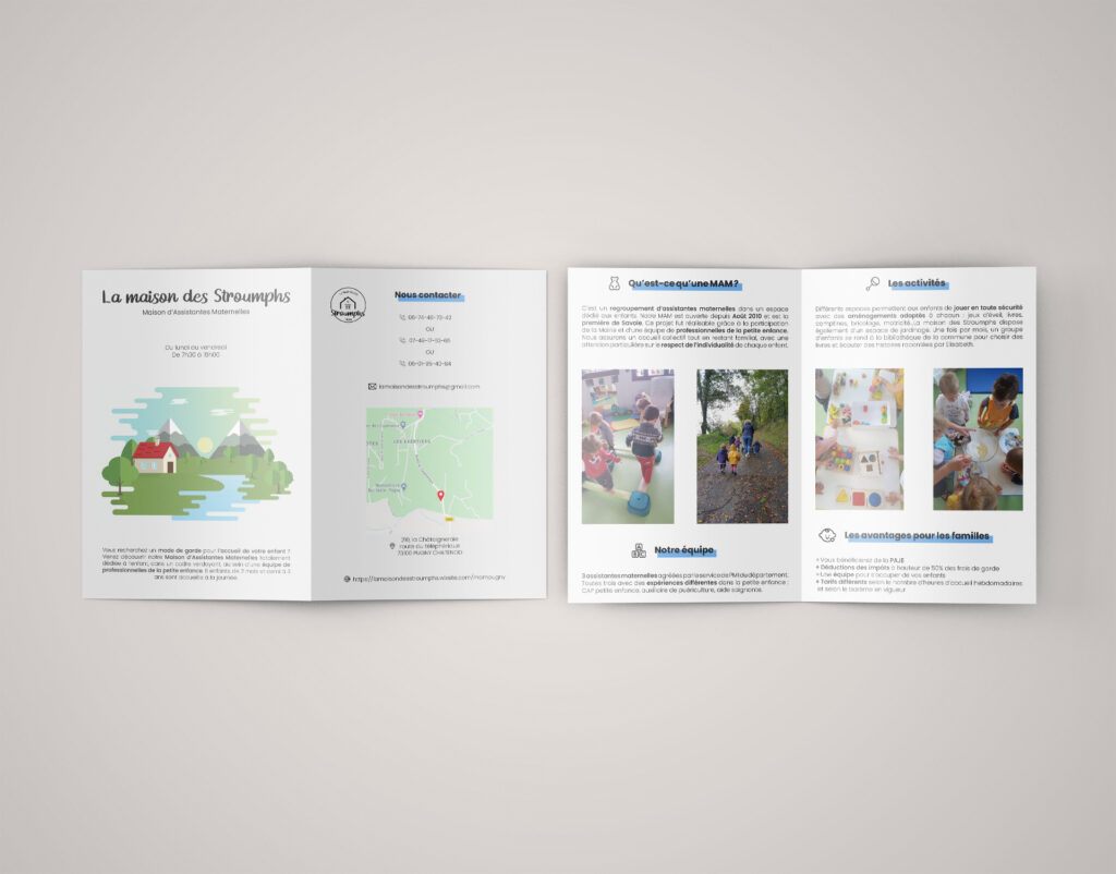 J'ai par la suite pu décliner cette illustration en flyer et carte de visite pour commencer à créer une identité uniforme à cette Maison d'Assistantes Maternelles.